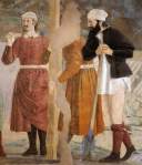 Si debemos suponer, entonces, que el pálpito artístico de Piero osciló entre Masaccio y Domenico, es plausible que tendiera hacia el primero; como posible que buscase en él un significado existencial -siempre asistido, cómo no, por la prosa de Alberti y su Trattato della Pittura– que ya no era el estilo florido y colorista del segundo, por lo que podríamos glosar grosso modo la iniciativa de Piero en: significado existencial (Masaccio) + adorno, estilo, ornamento (Domenico Veneziano). Visto así, sólo faltaría reseñar un apunte que considero fundamental y al que se refiere, mucho mejor que yo, Alberto Busignani: «El sublime arcaísmo de Piero della Francesca, mejor que a una arcana y soterrada correspondencia con la Antigüedad, podrá atribuirse al elevado sentimiento que sobre la Antigüedad tuvieron los primeros humanistas, para quienes la identificación de la florentinitas con un ideal de romanitas, significó coincidencia de valores políticos (la libertad del civis romanus propuesta de nuevo por los ciudadanos de Florencia) y culturales (la historia de los antiguos es la historia que nutre al presente: de aquí el humanismo filológico).» Este párrafo podría resumir (aún con décadas de edad) el cuerpo, el alma y el temperamento de ese primer Renacimiento italiano nacido en la ciudad del Arno.