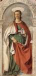 Un razonamiento que también es válido para el Políptico de la Misericordia de Borgo San Sepolcro, encargado en enero de 1445 y entregado mucho más tarde a pesar de haber pactado la fecha de 1448. Sobre las tablas de San Sebastián y San Juan Bautista, al parecer las últimas en ejecución, Longhi se refirió en estos términos: «en la distribución arquitectónica del políptico, de estructura perfecta, se disponen estos santos como bajo los arcos de un pórtico de Alberti deslumbrado por un sol, y se convierten ellos mismos en templo y en medida del templo».